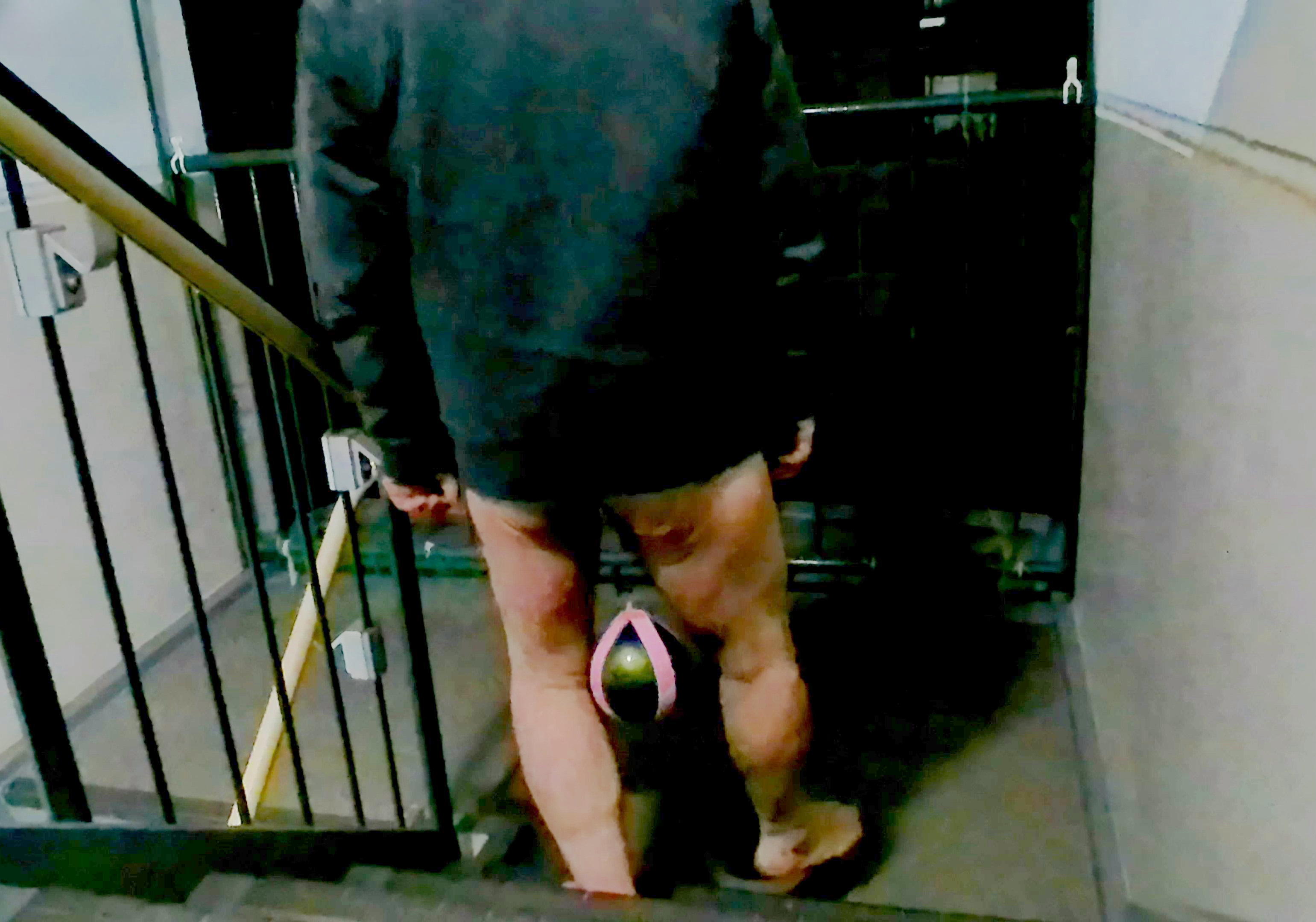 金玉が良く伸びますね。 私も変態的な要素があり、お仲間になれそうなので寒空の中で、しばらくぶりにやってしまいました。 勃起させてもだらしがないので、陰核に紐を掛け2kgのウエイトボールをぶら下げて階段を上り下りしてズシンズシンという震動を陰核に掛けて、強引に引っ張られる感覚を楽しんでいます。 ウェイトボールが足を動かすたびに太股で振られるので震動だけでなく振られて引っ張られる方が陰核への刺激は過激です。