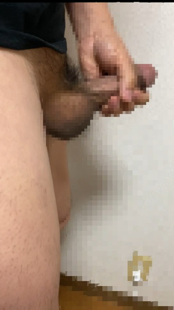 立ってチンポしごいてる動画からの切り取り。 チンポ短いですよね。わかってますよ、そんなこと。 それよりこの金玉の躍動感。前後にたぷんたぷん揺れた 時の、金玉が一番前に迫り出した瞬間です。
